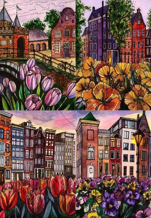 黑咖啡拼圖,拼圖,預購,花朵,建築,荷蘭,阿姆斯特丹,花卉景觀,四季風情,色彩鮮豔,特色,藝術家,藝術,主題,1000片,Grafika,法國品牌